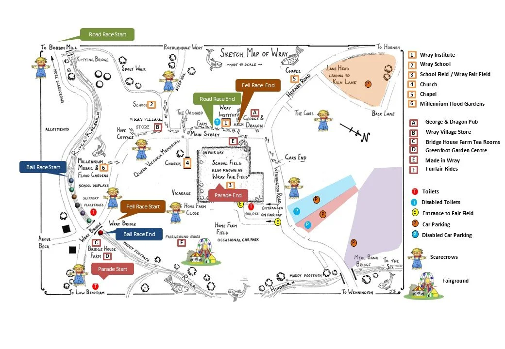 Here is a sketch map of the village - for parking follow the signs as you enter the village of Wray: